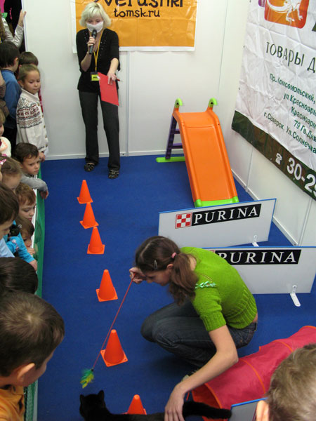 Монопородные кошачьи шоу носили поистине сказочные названия: «Британская сказка» (как вы уже поняли, для «британцев»), «Кукольный рай» (для скоттиш-фолдов и скоттиш-страйтов), «Нравы Востока» (для сиамских и ориентальных кошек), «Гордость нации» (для огромных красавцев-«сибиряков»).Сами посетители участвовали в различных конкурсах: аджилити (полоса препятствий для кошек и хозяев, которые усиленно помогали своим питомцам); конкурс портретов и стенгазет; поиск самого усатого кота и другие забавные мероприятия. Для детей проходила шоу-программа с клоунами. Любой участник выставки мог сфотографировать любимого питомца у профессионального фотографа. А еще на выставке собирали средства в помощь бездомным животным.